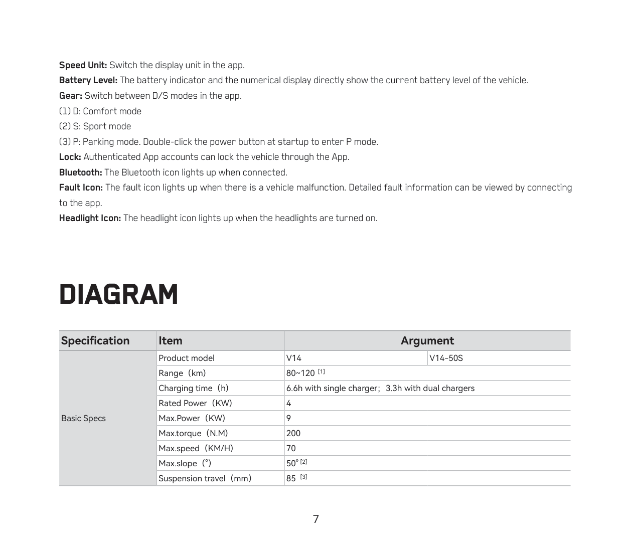 | Basic Specs | Product model | V14 / V14-50S |