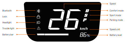 Battery Level: The battery indicator and the numerical display directly show the current battery level of the vehicle.