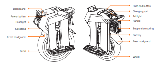 Electric Unicycle is a high-tech recreation product. When you ride without following the operation specifications, it may lead to unpredictable injuries and property losses. The following will explain how to use Electric Unicycle and the precautions in details. Please read it carefully and use Electric Unicycle as required. Before using, please make sure that all parts of Electric Unicycle are not damaged and installed properly.